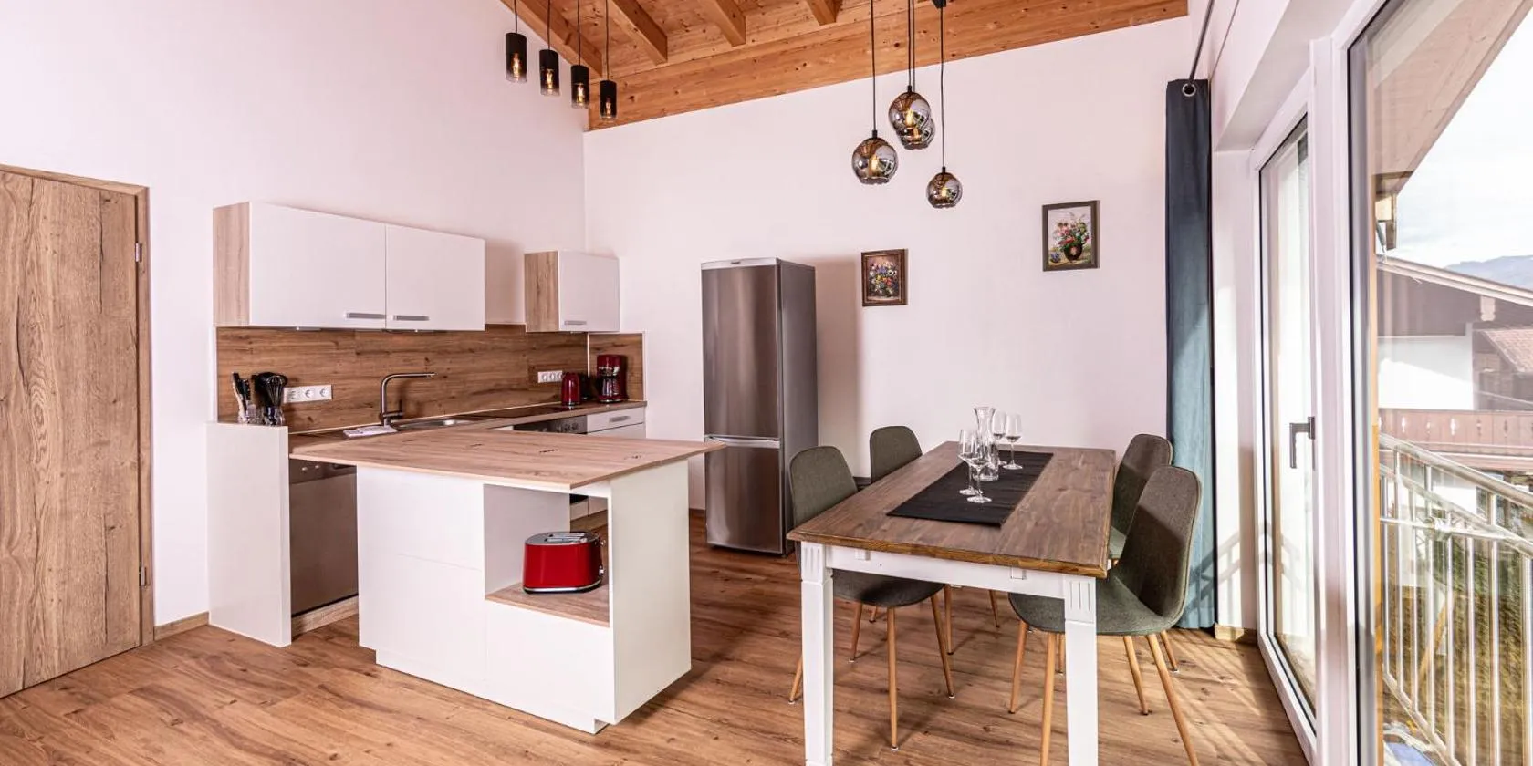 Alpenschwänchen 4 - Saalachschwänchenはマックス・アイヒャー・アリーナから15km以内、ユーロパークから18km以内で、無料WiFiとテラスを提供しています。クレスハイム宮殿から14kmの宿泊施設で、庭と無料専用駐車場を提供しています。 リビングルームと設備の整った簡易キッチン(冷蔵庫、食器洗い機付)が備わるアパートメントです。