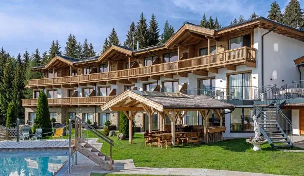 Das Hohe Salve Sportresort, 4 Sterne Superior is located directly next to the valley station of the Hohe Salve Cable Car in the Kitzbühel Alps.