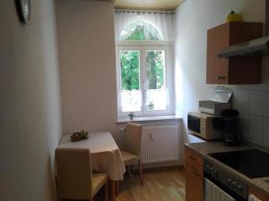 Comfortable Living Space: Fewo am Personenaufzug in Bad Schandau offers a spacious apartment with a garden and terrace. Guests enjoy free WiFi, ensuring connectivity during their stay. Modern Amenities: The apartment features a kitchenette, private bathroom, and a dining area. Additional amenities include a barbecue, tea and coffee maker, and a TV. Convenient Location: Located 70 km from Dresden Airport, the property is close to attractions such as Königstein Fortress (10 km) and Saxon Switzerland National Park (10 km). Guests appreciate the quietness of the area and the convenient location.
