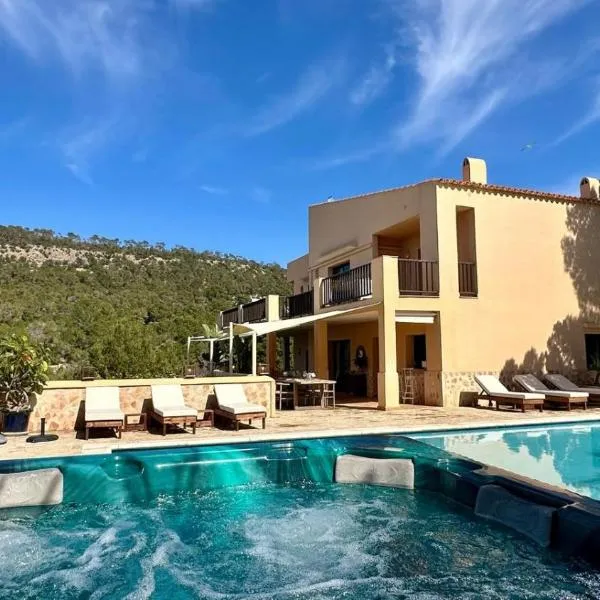Featuring mountain views, Villa Cas Hespero provides accommodation with an open-air bath and a balcony, around 14 km from Marina Botafoch.